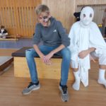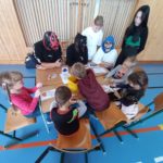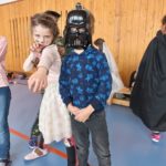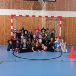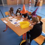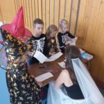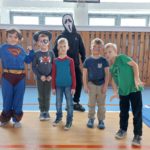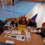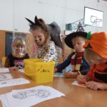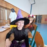 Ve čtvrtek 3. listopadu si žáci devátých tříd nachystali pro prvňáky halloweenský dopolední program, při němž si děti mohly zahrát různé hry – zkusily si opičí dráhu na koštěti, házely míčky do pece, kterou hlídala čarodějnice a musely prolézt velkou pavučinou, ve které hledaly pavouky. Dívky z devátých tříd jim malovaly na obličej různé motivy spojené s oslavou Halloweenu a také mohly samy tvořit – vyráběly duchy ze svačinových sáčků a vybarvovaly omalovánky (dýně, duch, netopýr) pod dohledem tří strašidel. Všichni prvňáci i deváťáci si akci pochvalovali. Žáci 1.A dokonce na oplátku vyrobili pro deváťáky halloweenské plakáty.