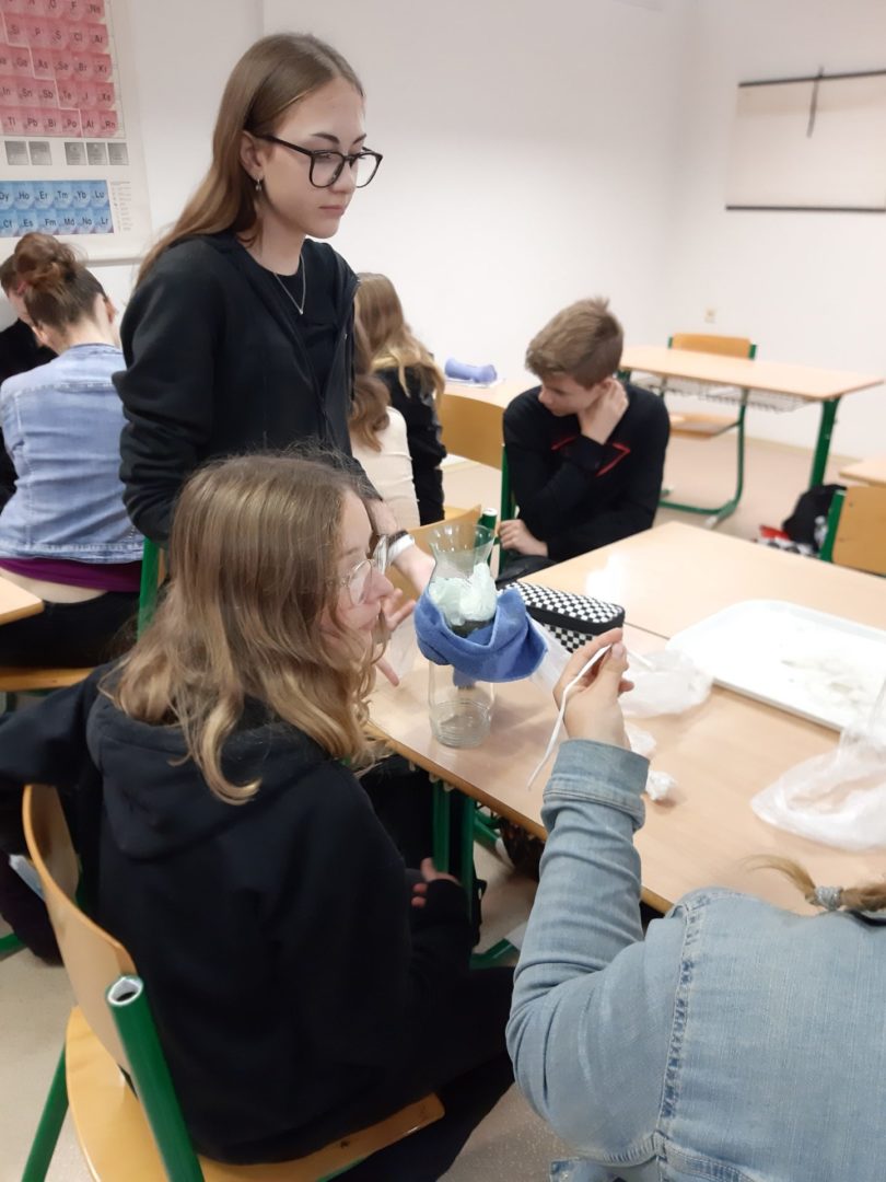 V rámci praktické výuky o vodě navštívili žáci 8. ročníku nejen čistírnu odpadních vod ve Vyškově, ale na hodině chemie si ve skupinách vyzkoušeli vyrobit své vlastní čističky z PET láhví.