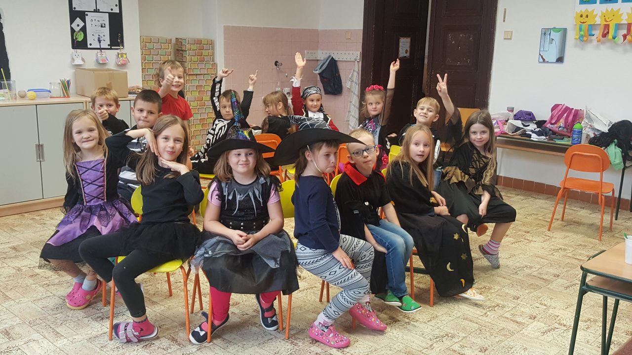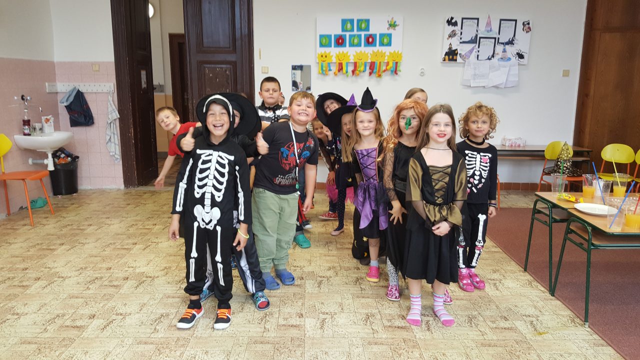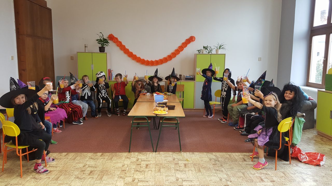 Halloweenská party ve školní družině proběhla 2. listopadu. Děti si v družině zatancovaly ve strašidelných kostýmech, zahrály spoustu soutěží a her.