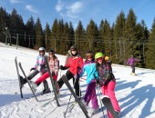 Týden od 11. do 18.ledna 2014 trávila čas skupina 45 žáků naší školy na lyžařském kurzu v oblasti Staré Hamry Gruň v Beskydech. I přes krajně nepříznivé sněhové podmínky v téměř celé České republice se nám podařilo lyžovat a snowboardovat v předpokládaném rozsahu. Nikde nebyl sníh, ale nedaleký areál Mezivodí splnil náš sen a poskytl půlkilometrový svah vhodný pro začátečníky i zkušenější lyžaře a snowboardisty. Autobus nás dopravil pod kopec, který byl uměle zasněžován a průběžně upravován. Vlekaři i ostatní pacovníci areálu vždy ochotně pomohli. Využívali jsme každé chvilky ke zdokonalování v pohybu na jednom či dvou prknech. Pokroky byly viditelné a spokojenost se dala číst ve tvářích zúčastněných. Praktický výcvik doplňoval večerní program zaměřený na teorii lyžování a hry. Kurz uzavíraly závody v biatlonu speciál a maškarní rej. Lyžařský výcvik splnil svůj cíl. Fotografie z kurzu najdete zde.