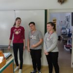 Poznávání a zařazení chemických látek bylo hlavní motivací soutěže, kterou jsme pro žáky 9. ročníku připravily na začátku února. Žáci soutěžili ve vědomostní soutěži, v níž získávali za správné odpovědi body, které pak rozhodovaly o jejich umístění mezi jednotlivci i mezi třídami. Ve srovnávacím testu měli žáci za úkol napsat správné názvy nebo vzorce 20 chemikálií. Vítězná třída nakonec získala putovní pohár, diplom a sladkou odměnu. Oceněni byli také první tři žáci z každé třídy. Viz foto.