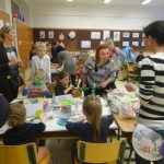 Křupající sníh, poletující vločky a příjemně mrazivé počasí doprovázely kroky návštěvníků, kteří zavítali na letošní školní jarmark. Uskutečnil se v sobotu 1. 12. 2018 v prostorách naší školy na Habrovanské ulici. Milou předvánoční atmosféru vnesl do budovy dětský pěvecký sbor, který koledami zahájil další, hlavně rukodělný program. A poté se malí i velcí návštěvníci mohli podle libosti věnovat výběru drobných vánočních dárků, které pro ně v hodinách výtvarné výchovy zhotovili žáci, nebo si zkusit vlastnoručně vyrobit nějakou ozdůbku v dílnách. Nabídka byla opravdu pestrá: andílci a vánoční skřítci z papíru, z rolniček i kukuřičného šustí, hvězdy z korálků, sena a drátků, keramické svícny, proutěné i látkové věnce a zvonky, malování na obličej a pro menší děti nechyběly omalovánky a dopis Ježíškovi. Jinde se zase zdobily perníčky a pletly vánočky, které záhy provoněly školní chodby. Pokud někomu vytrávilo nebo dostal chuť na něco dobrého, mohl si posedět v kavárničce, kde naše žačky nabízely napečené sladké pochoutky, čaj, kávu či mošt. A tak nebylo divu, že do sněhem posypaných ulic mnozí z návštěvníků jarmarku odcházeli až s prvními hvězdičkami.