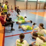 Jak ve školním, tak i v okresním kole na děti čekaly disciplíny: přeskok přes švihadlo, kliky, trojskok do dálky, hod medicinbalem a dribling.