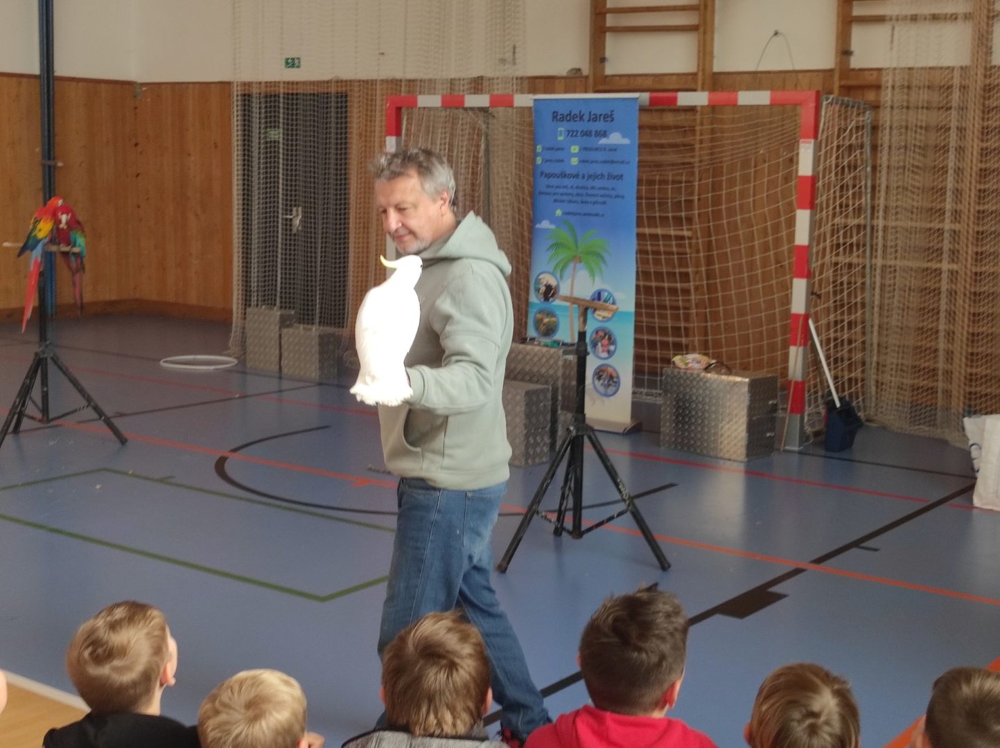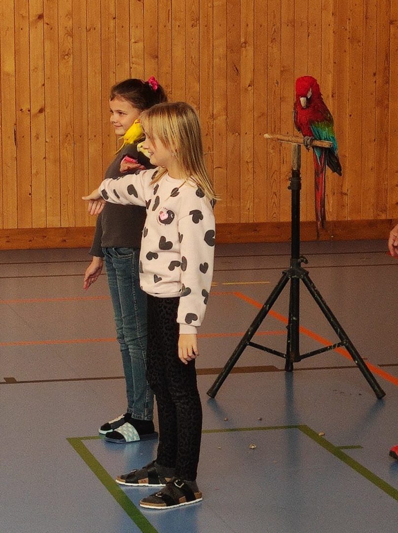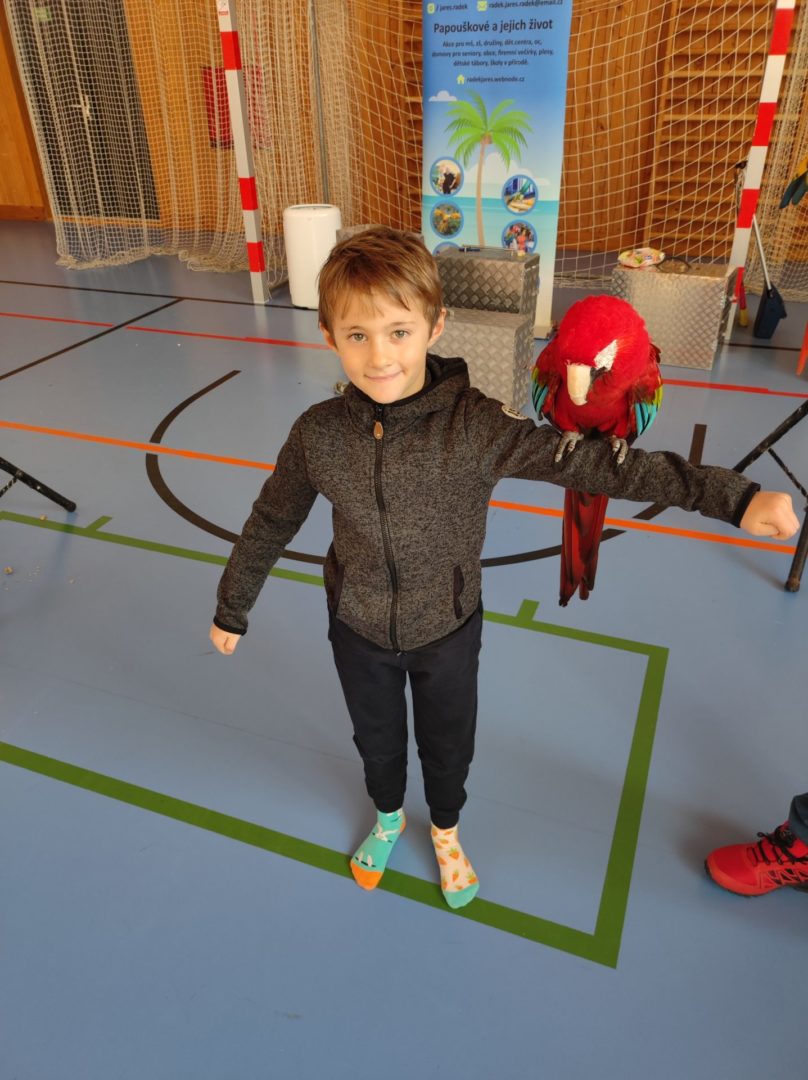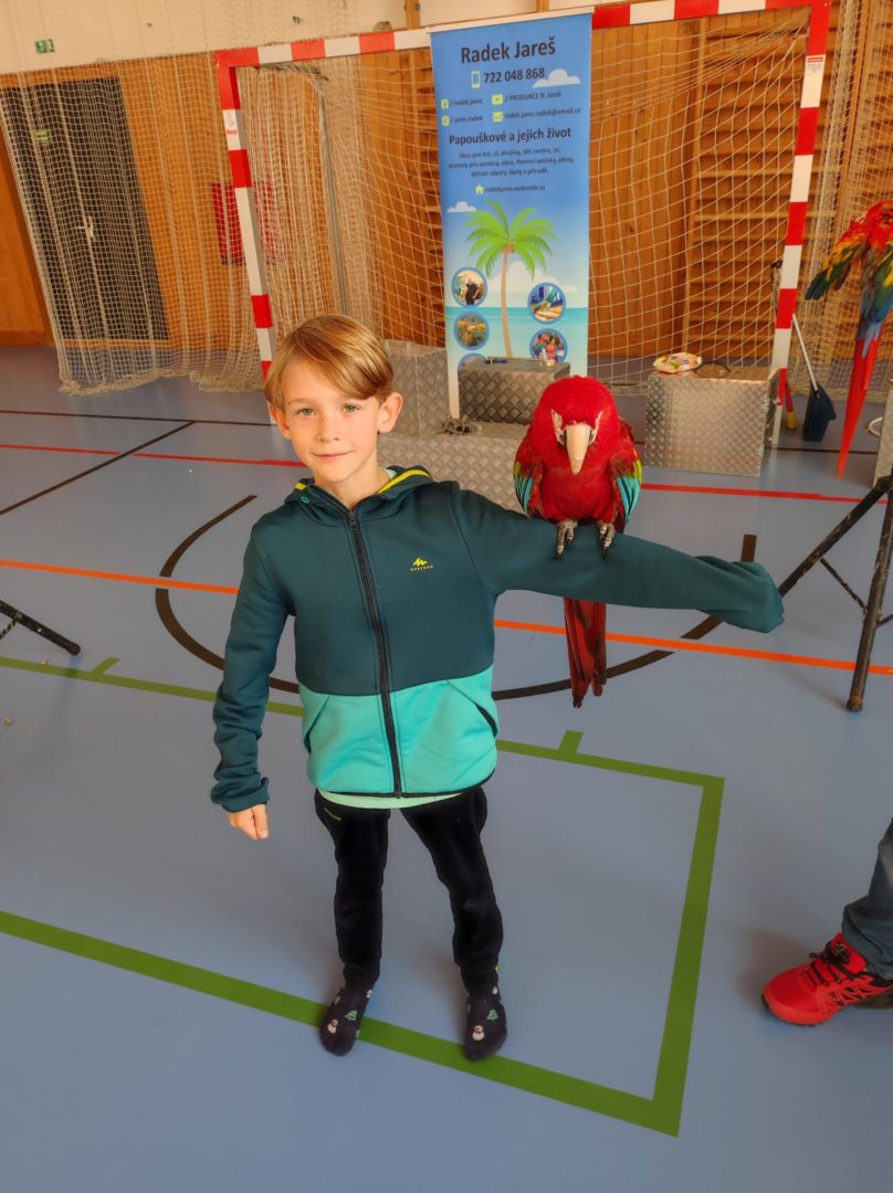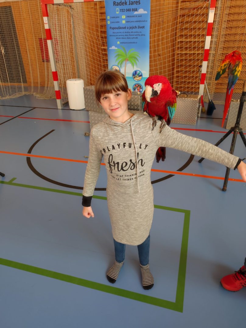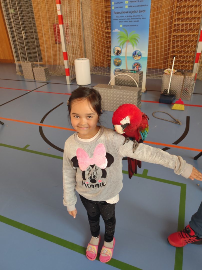 V pondělí 14. listopadu k nám až z Čech přiletěli nádherní papoušci, malí, velcí, barevní,… Předvedli nám spolu s cvičiteli, co všechno umí. Do programu se zapojily také přítomné děti. Po skončení vystoupení měly všechny děti možnost vyfotit se s velkým Ara papouškem na ruce. Byla to nejen krásná podívaná, doplněná o zajímavé příběhy papoušků, ale také velmi poučná. Myslím, že na papoušky budeme všichni ještě dlouho vzpomínat.