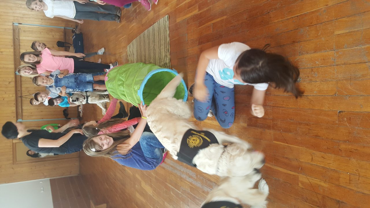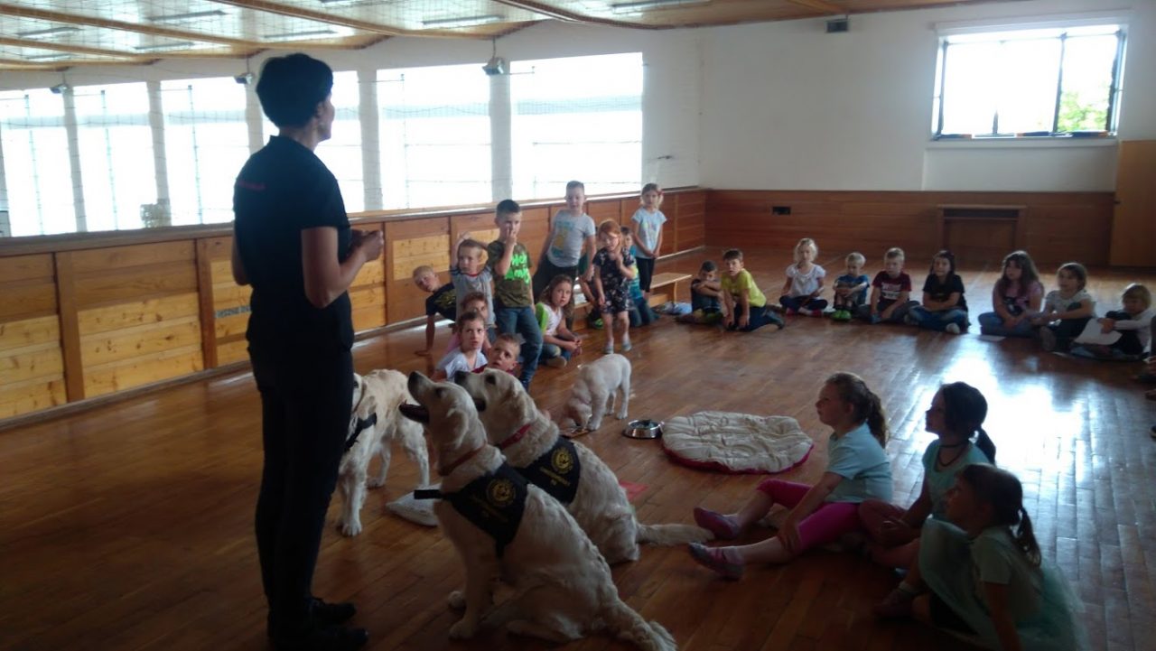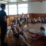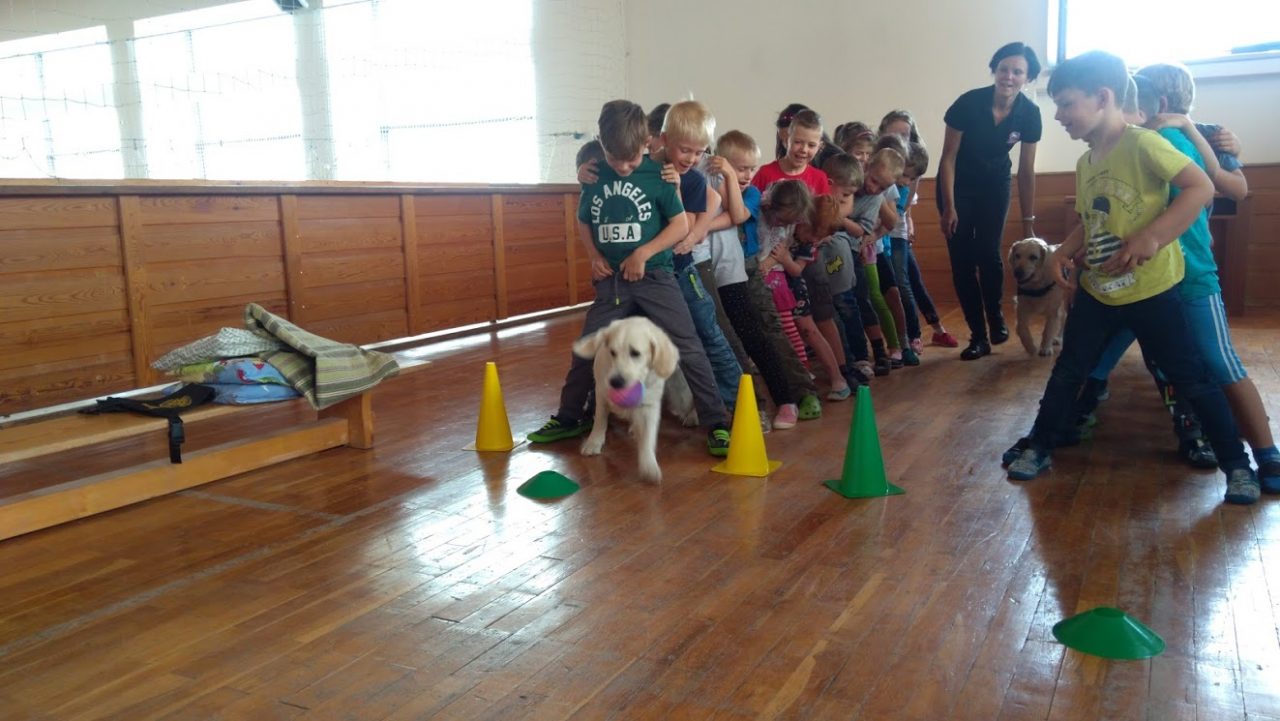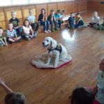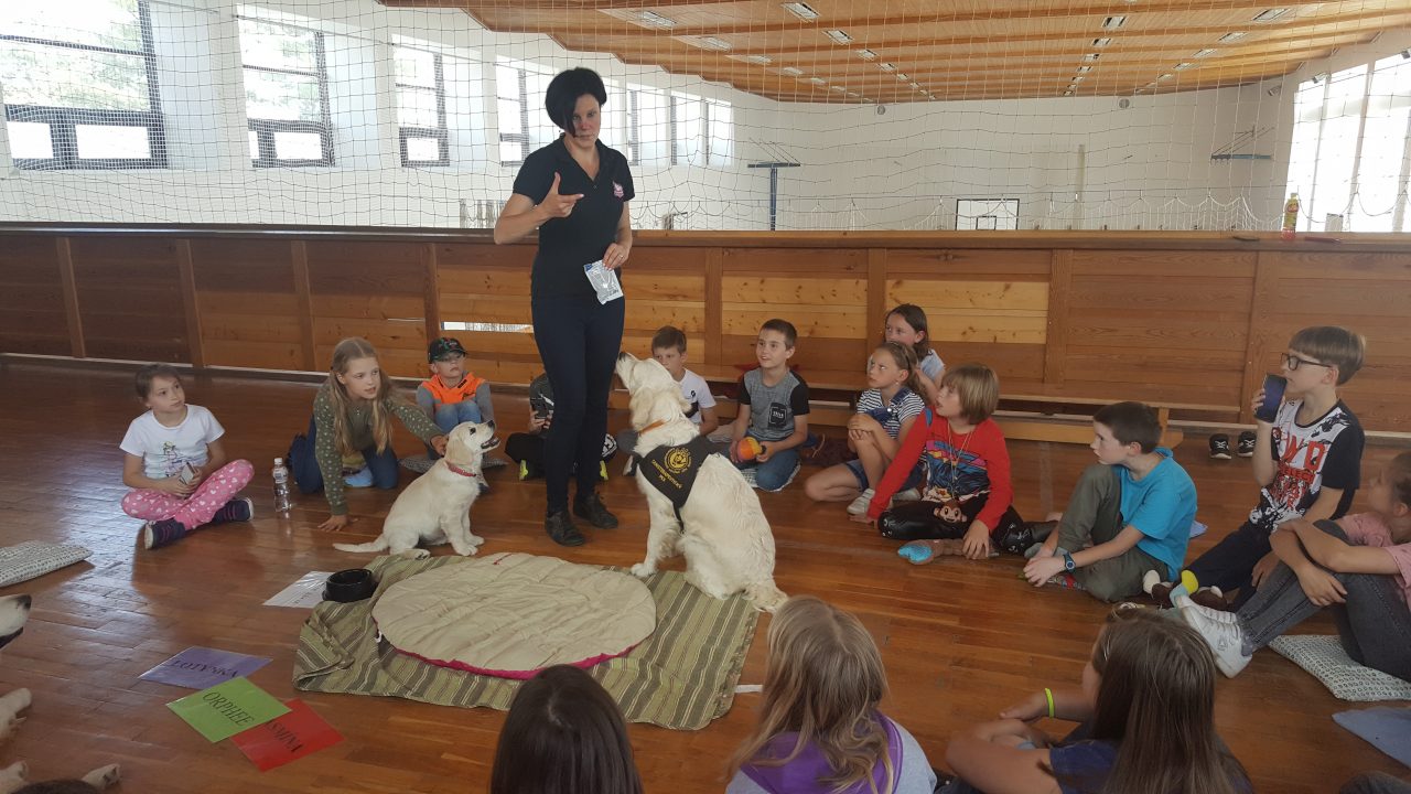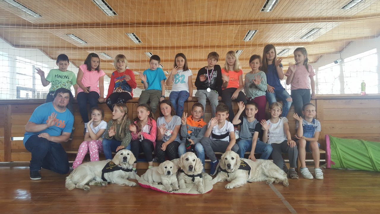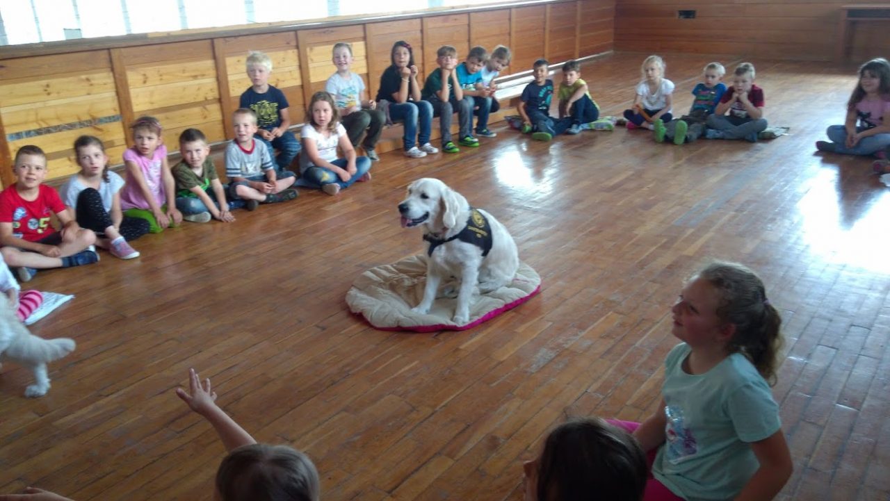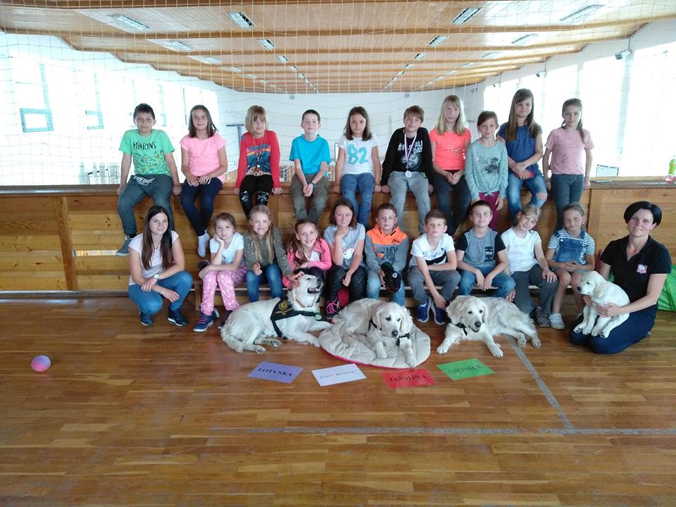 V pátek 11. května nás do družiny přišli potěšit tři krásní dospělí pejskové a jedno roztomilé štěňátko Růženka, všichni zlatí retrívrové. Děti se dozvěděly spoustu zajímavého o canisterapii, také si s pejsky pěkně zasoutěžily ve slalomu a podlézání. Všichni pejskové byli opravdu skvěle vycvičení, dokonce i Růženka dělala první pokroky. Tak až nám někdy bude smutno, můžeme si vzpomenout na hezky prožité chvíle, které jsme uložili do následujících fotografií.