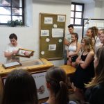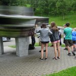 Před vstupem do muzea papíru nás překvapila slavnostní výzdoba nádvoří a dozvěděli jsme se, že jsme jediná skupina s prohlídkou, protože celý objekt byl jinak uzavřen kvůli svatbě. Škoda, že jako vstupenky nerozdávali svatební koláčky! Prohlídka papírny byla velice zajímavá. Přímo před očima nám na sítu z tekuté směsi papíroviny vznikal papír. Zatímco kluci se snažili koketovat s divou z recyklovaného papíru, my holky jsme obdivovaly již hotový a usušený papír ze sloního trusu. Po skončení prohlídky a svačině jsme se vydali do přečerpávací elektrárny v Dlouhých stráních. Poslechli jsme si přednášku a shlédli dokument o výstavbě a provozu elektrárny a vydali jsme se do labyrintu tunelů s turbínami. V něm mě zaujaly i roztodivné malůvky po stěnách, které by podle našeho průvodce měly pomáhat proti klaustrofobii (ale ve mně spíš pár dalších fobií vyvolaly).