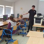Během dvou dnů se děti ze ZŠ Komořany, ZŠ Habrovany a soukromé ZŠ Prameny mohly seznámit s roboty, které používáme ve 4. až 9. třídě v rámci rozvoje digitální a informační gramotnosti. Žáci 9. ročníku nám pomohli představit Ozoboty a VEX 123, díky kterým se v hodinách zdokonalujeme v logickém myšlení, algoritmizaci, spolupráci.