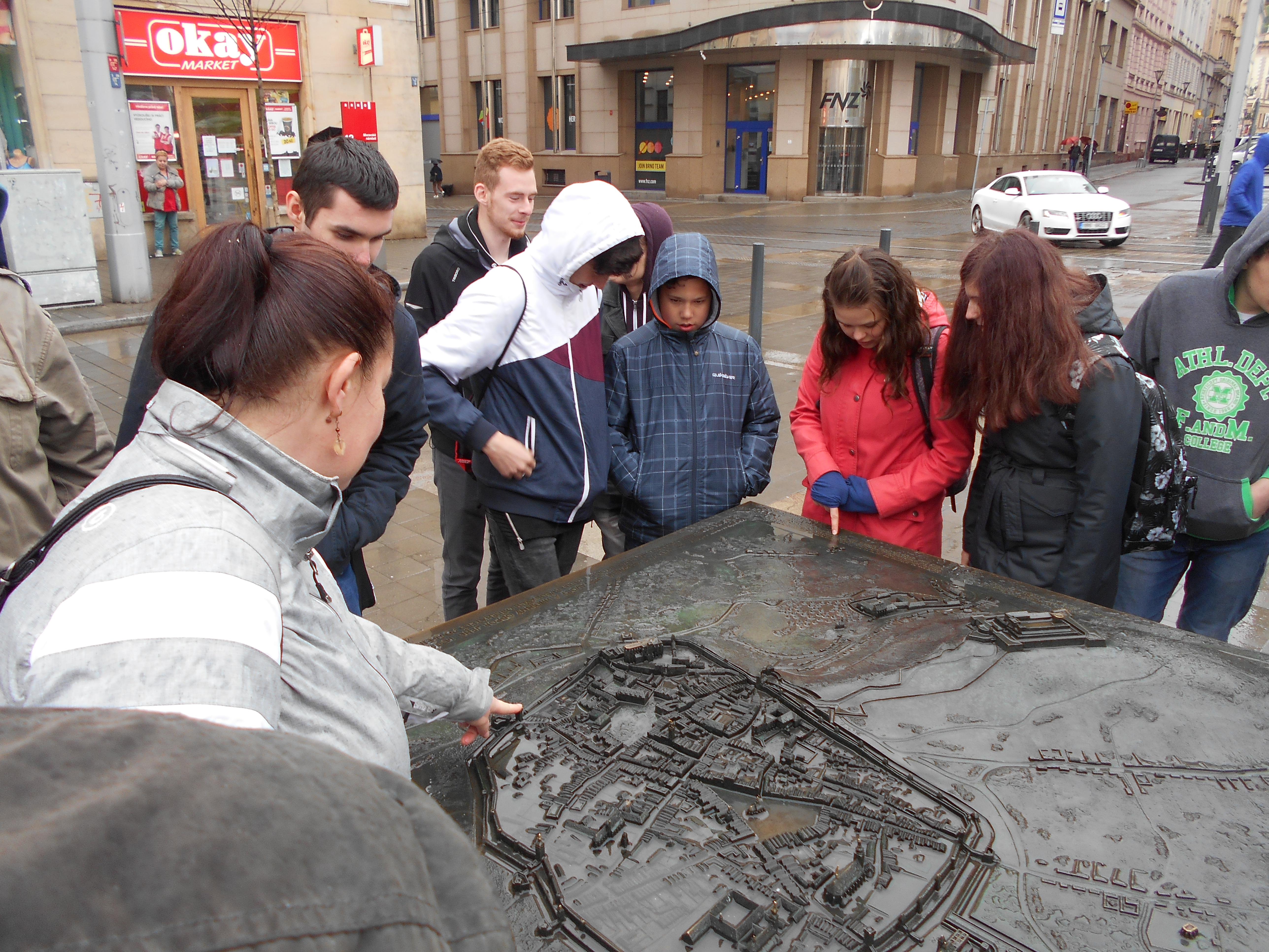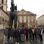 Po obědě odjeli maďarští chlapci a děvče spolu s několika kluky a děvčaty z Rousínova do Brna. Ani déšť, ani vítr neodradil česko-maďarskou skupinku od návštěvy nejznámějších brněnských památek – obhlédli jsme katedrálu sv. Petra a Pavla, brněnskou Starou radnici, pak jsme šli přes Náměstí svobody ke kostelu sv. Jakuba a strávili několik desítek minut v kostnici pod sv. Jakubem. Podívali jsme se na sochu markraběte Jošta a výlet ukončili krátkým volnem ve Vaňkovce, které někteří využili k nákupu suvenýrů. Kolem šesté hodiny večer si děti opět vyzvedly hostitelské rodiny.