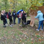 Měla jsem to štěstí, že jsem mohla za naši školu soutěžit v dívčím triu z 9.A (Adéla, Julie a já). Soutěžní arch a dva průvodce jsme dostaly hned při vstupu do ZOO a spolu s námi vyrazili také soutěžící ze základky z Mohelna. A taky se přidal déšť…..