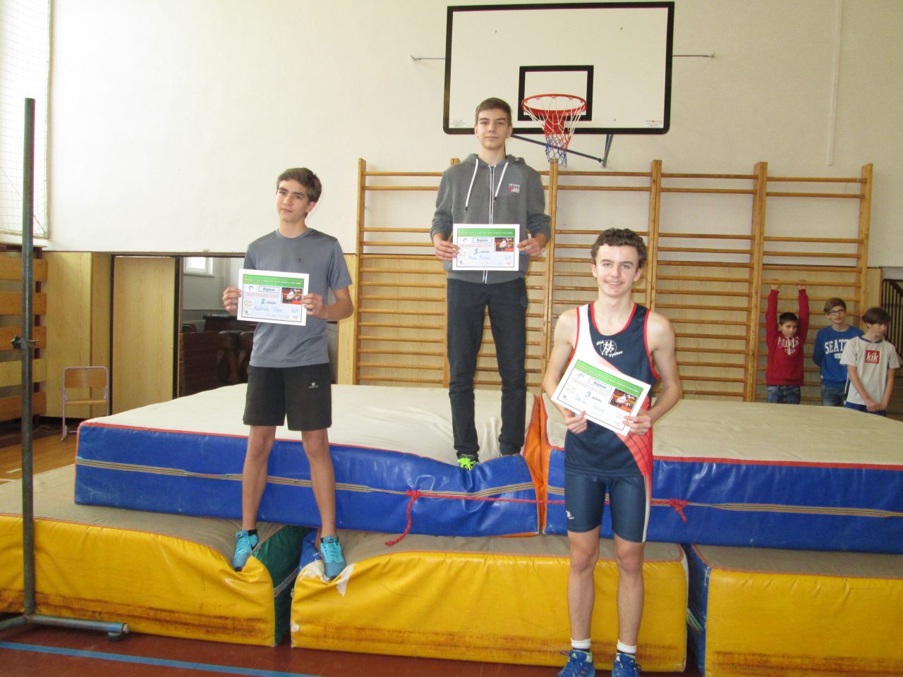 Náš žák závod starších žáků vyhrál výkonem 154 cm. Další náš žák výkonem 151 cm zůstal těsně pod stupni vítězů a další žák školy obsadil dělené 6. místo.